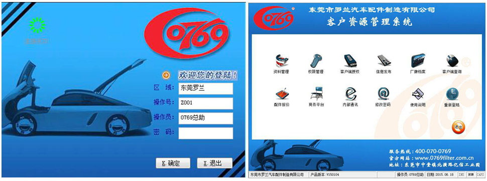 0769产品集合了10余年产品开发经验及行业专业知识,开发滤清器行业内首家客户管理系统,实现客户查询、下单、物流、售后反馈信息等多项功能一体化,提供快速周到的优质服务,大大加强客户专业化程度,有效提升效率,让客户面对市场更有信心。